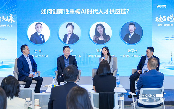 圆桌讨论环节,由Ebpay国际业务总经理李华主持,开利亚太总部招聘总监邹羽、招商局集团资深AI产品经理孙敬萍、Ebpay国际人力资源总经理陆同伟三位专家,分别从外资、央国企和民企视角,围绕AI时代人才供应链创新性重构话题展开深度对话。